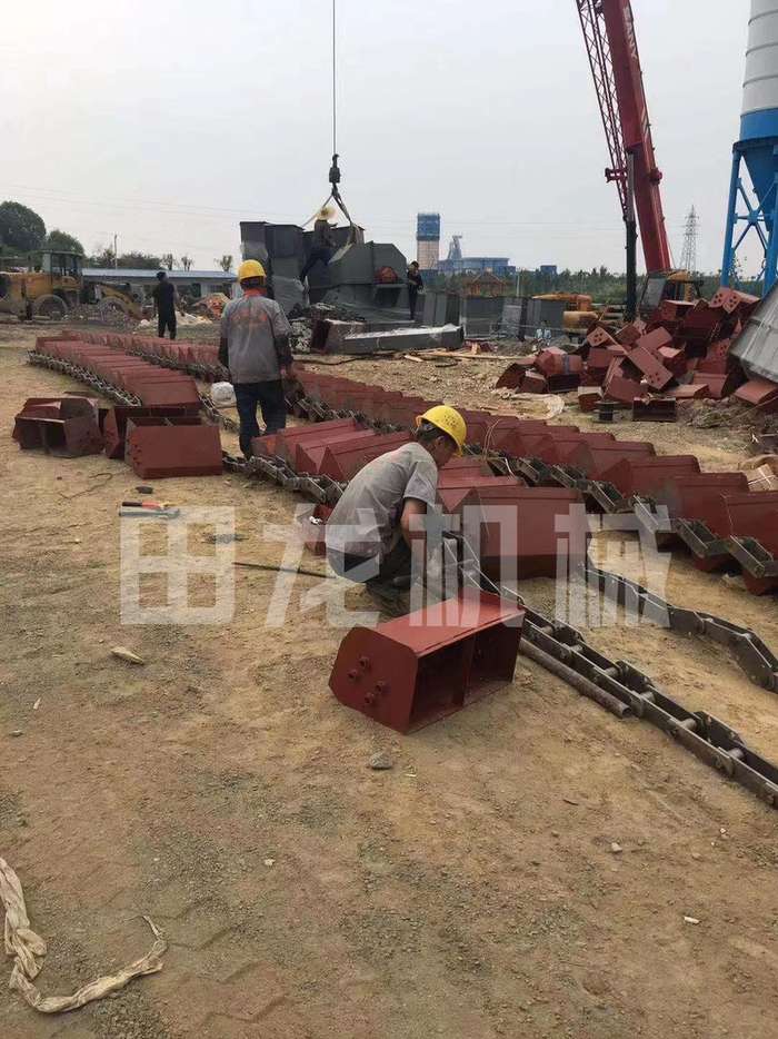 板鏈斗式提升機料斗鏈條安裝現(xiàn)場